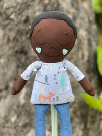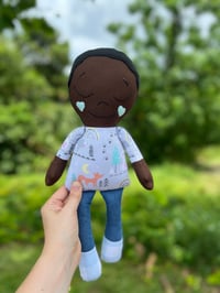 Coda is approximately 15 inches tall. He is double stitched and made with cotton and flannel fabrics. His face is hand embroidered. All Huggy Henrys are sensory friendly and very cuddly. Huggy Henry's are recommended for ages 4 and up.